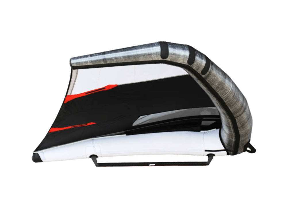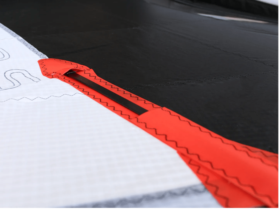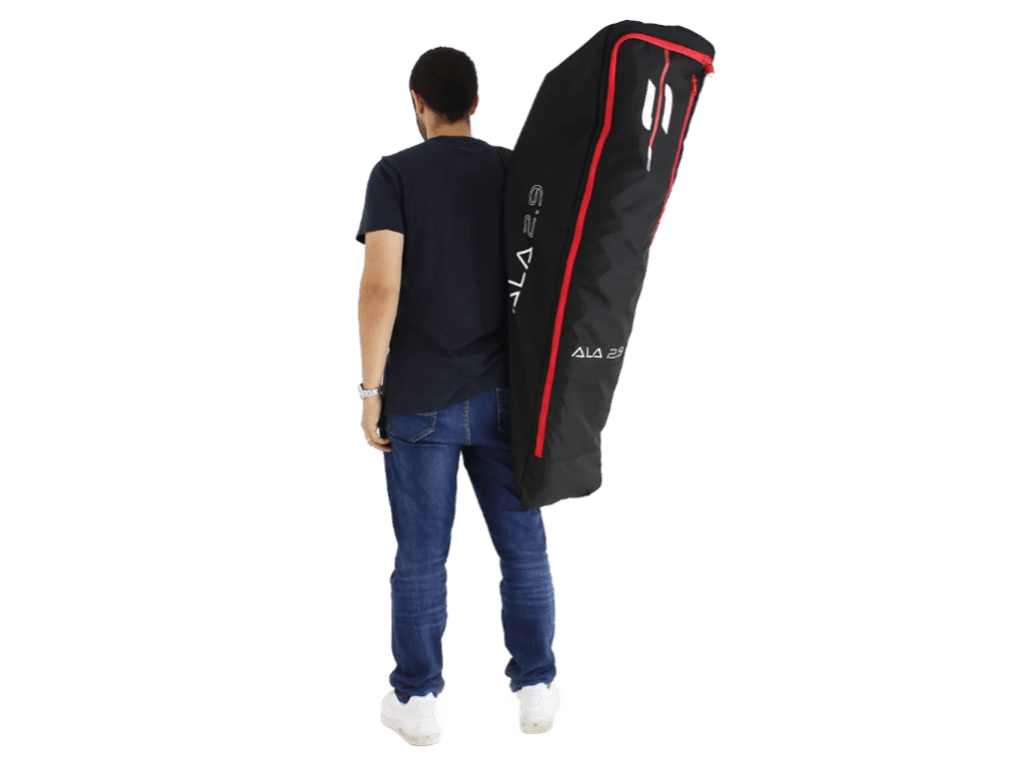 Questo perché l’ala viene inserita nella sacca senza smontare il boma. Rende più facile l’attrezzatura, ma richiede spazio durante il trasporto. Diciamo che dove sta la tavola e il piantone sta tranquillamente anche lei.