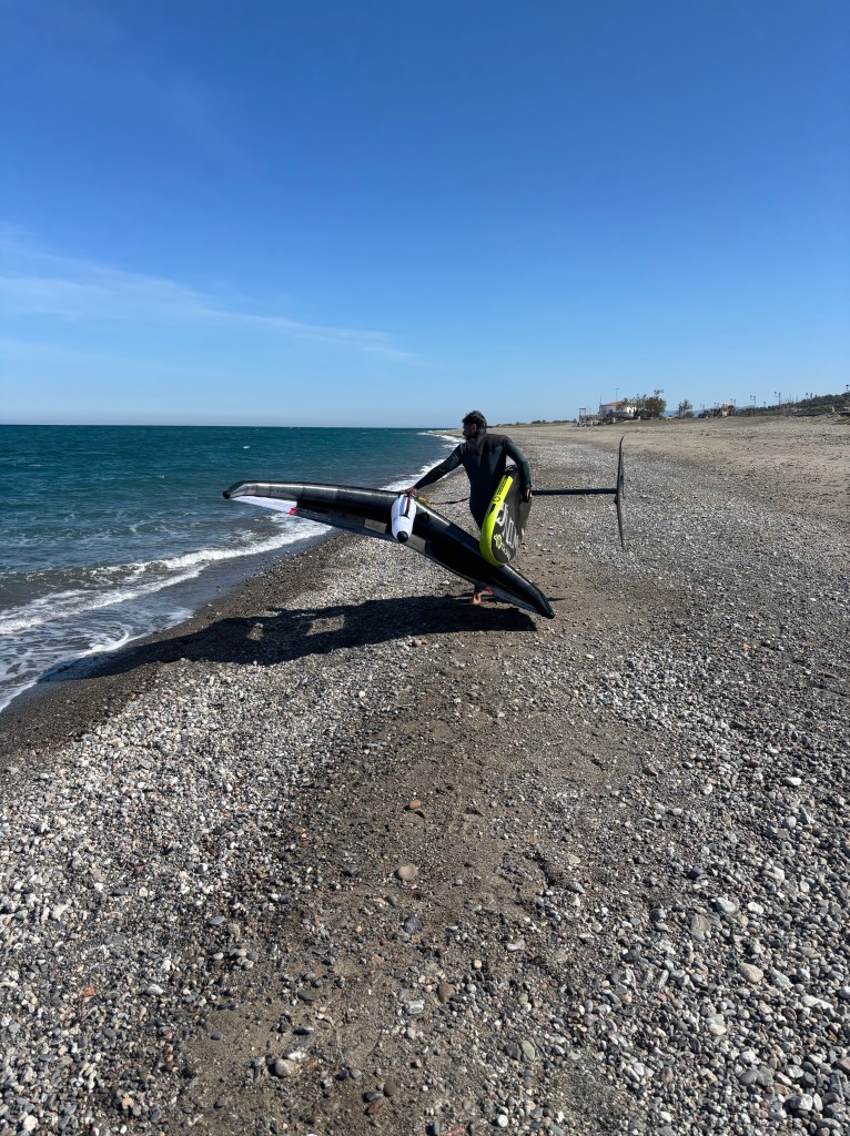 Assieme a lui abbiamo fatto tre giorni all’insegna del divertimento, spaziando tra surf, wingfoil e perfino foil elettrico !!!