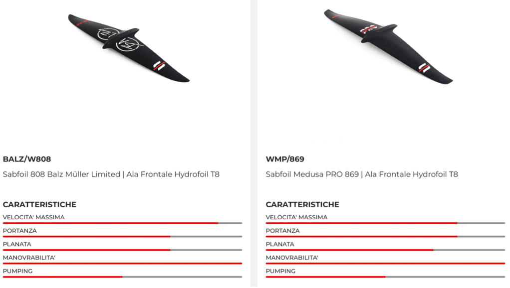 Il sito restituisce un risultato che all’apparenza può sembrare molto simile, ma che nella realtà evidenzia attributi tecnici riassunti in cinque grandezze: velocità massima; portanza; planata; manovrabilità e pumping.