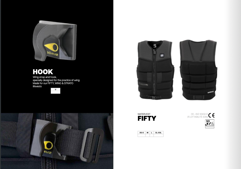 La linea Sooruz di impact è molto articolata ed offre diverse soluzioni che coniugano sicurezza e praticità, vi porto l’esempio del FIFTY, un impact omologato come salvagente al quale è possibile aggiungere il gancio per Wing.