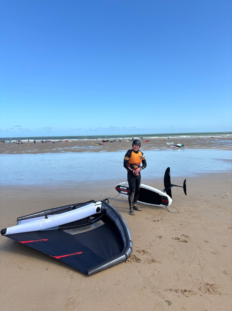 Piccola nota di colore a margine, ho avuto la possibilità di supportare mio papà che, a 60 anni compiuti quest’anno, ha partecipato alla sua prima gara di wing, dopo 4 ore in acqua in condizioni difficili e avendo completato diverse manche è rientrato a riva soddisfatto 😃
